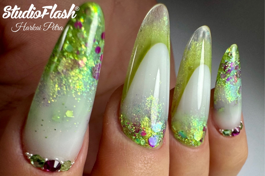 - Különböző beépített díszítési technikák (glitter ombre, color boomer, beépített francia, mozaik hatás)