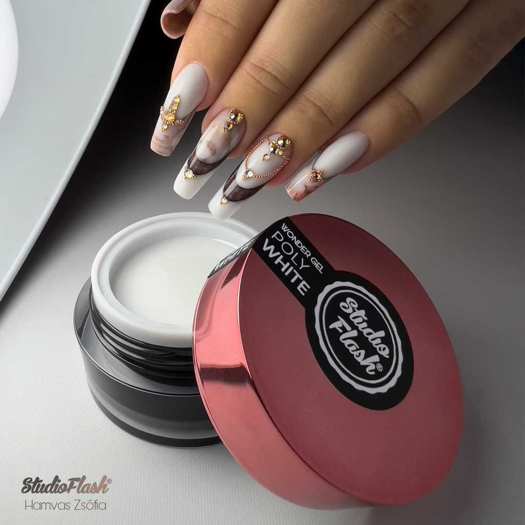 A StudioFlash új generációs Akryl Gél vagy más néven Poly Gél műkörmös alapanyaga a Wonder Gél. Ez az újfatja anyag ötvözi a műkörömépítő zselék és a porcelán anyag jó tulajdonságait.