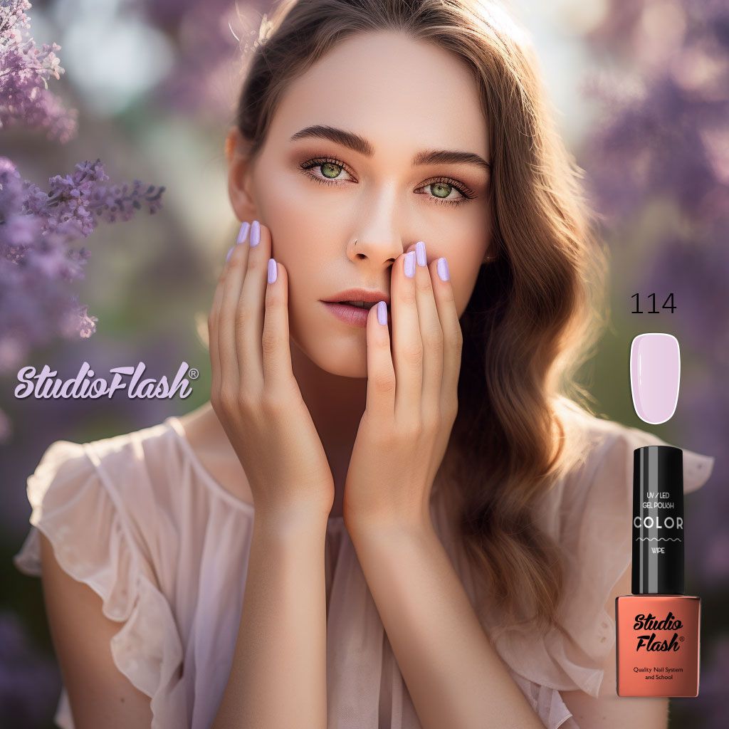 Az SF 114-es egy világos lila, romantikus, pasztell árnyalat, mely lágy és kellemes tónusával ideális választás lehet különböző köröm szettekhez. A színt a spiritualitással, tisztasággal és renddel társítják, amelyeknek köszönhetően nyugtató hatást kelt a használója számára.