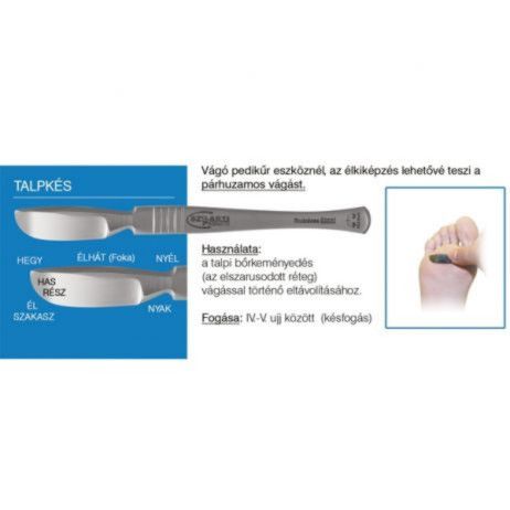 A talpkés formája és ívének kialakítása miatt alkalmas az öregujj szélén, és a talpon kialakult lapszerinti bőrkeményedés eltávolítására.